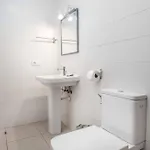 Badeværelset indeholder et bidet, separat toilet og et badekar.